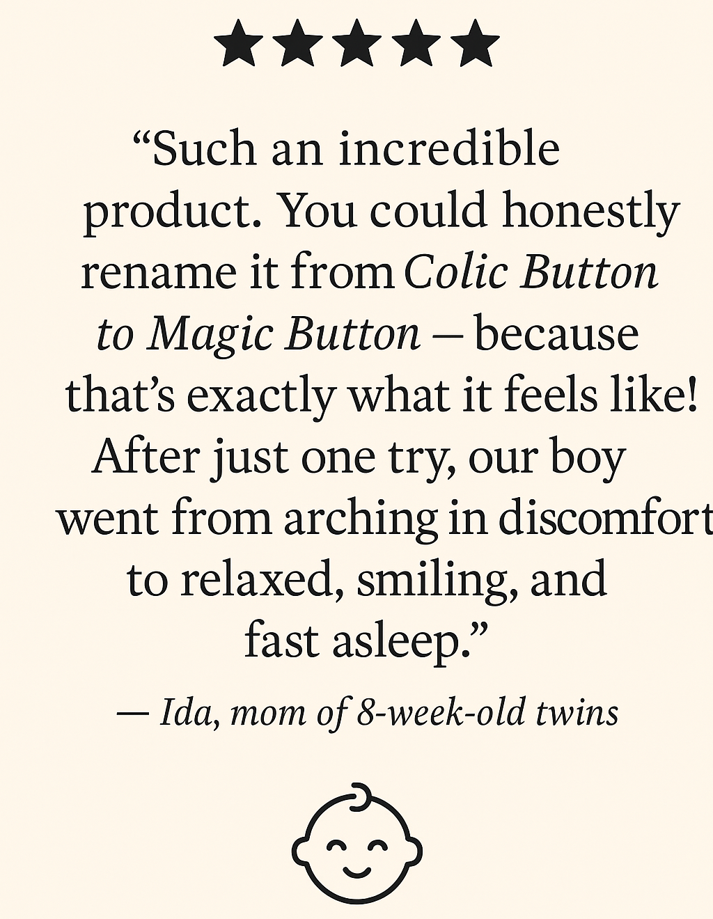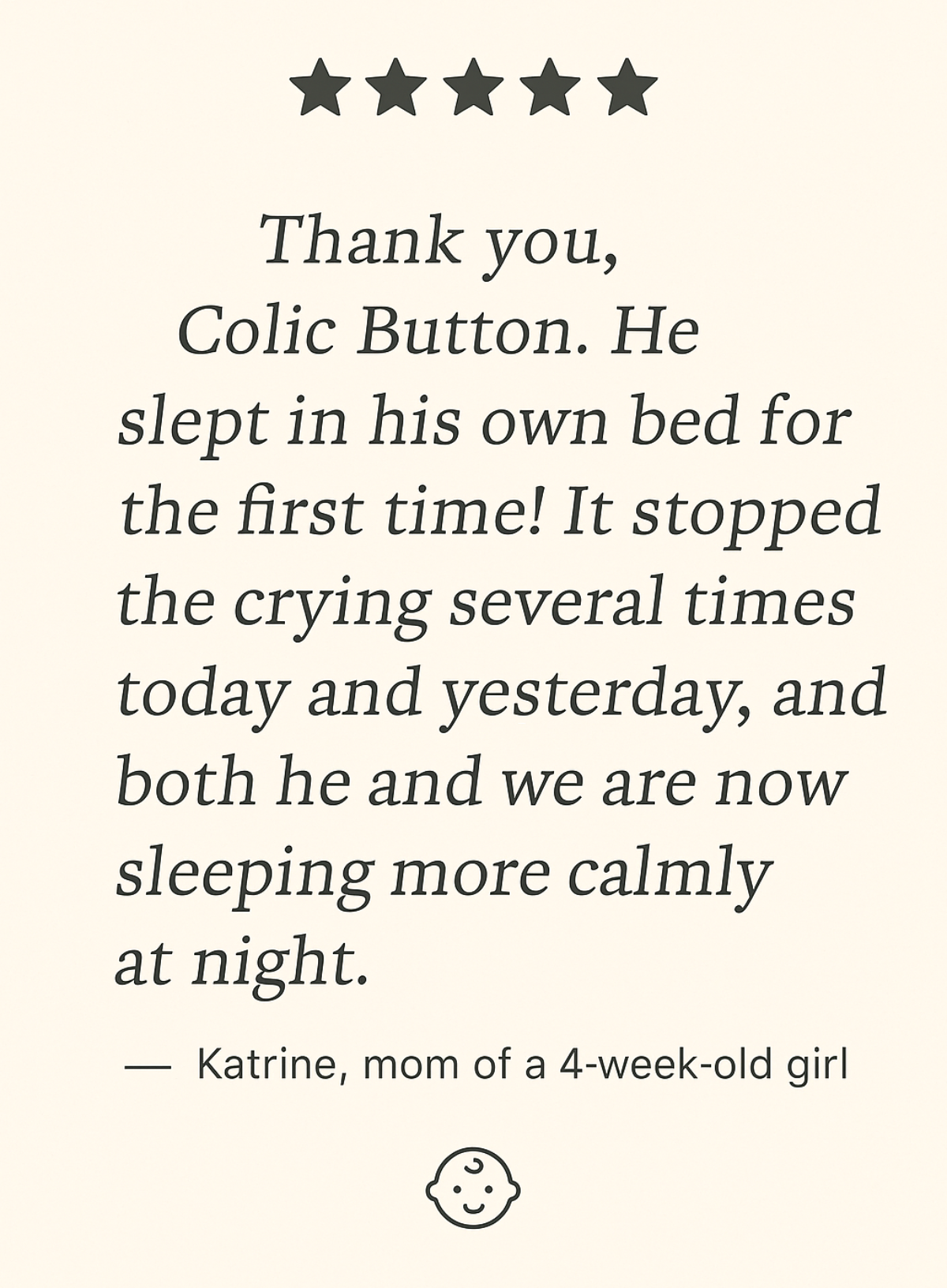 Uavhengig lege og fagpersoner har vurdert Colic Button® som trygg i bruk på spedbarn.